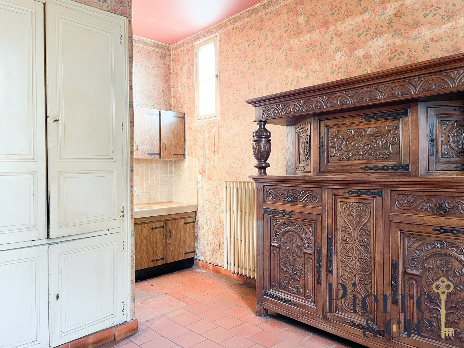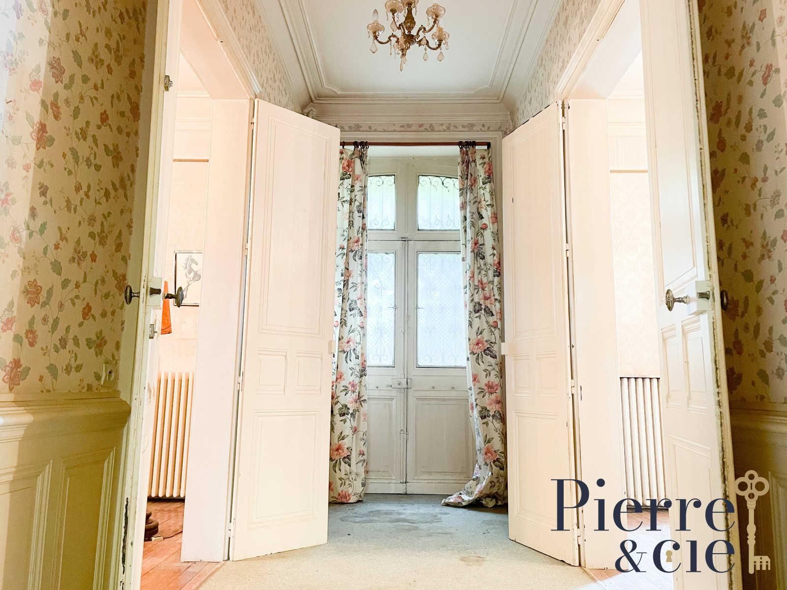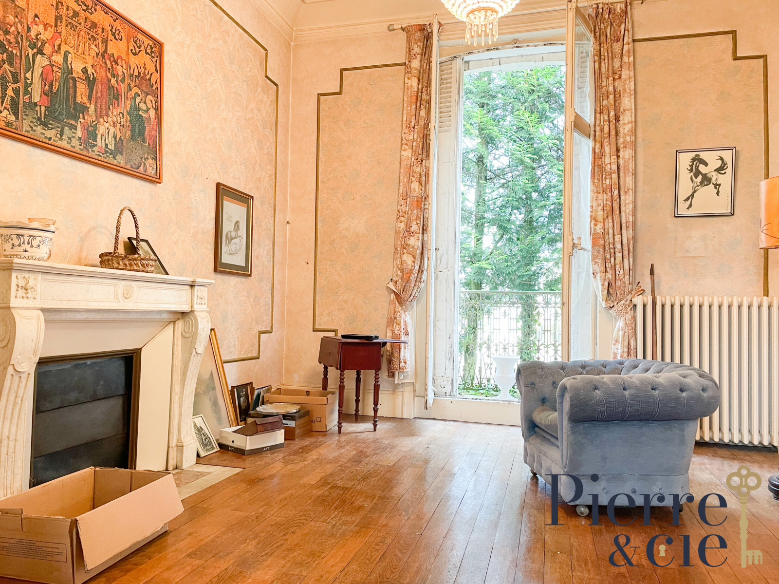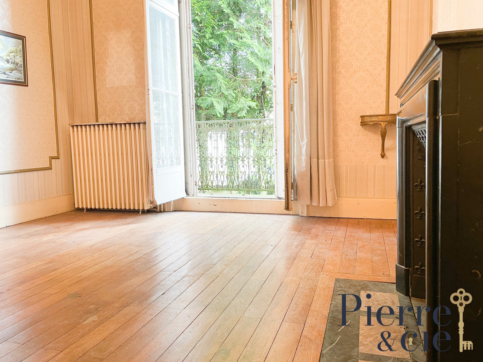 La maison d'environ 300 m² comprend au RDC, une vaste entrée avec escalier vers l'étage, un double séjour avec cheminée et parquet chêne, une très belle salle à manger également dotée d'une cheminée et parquet, une cuisine et wc avec lave-mains.