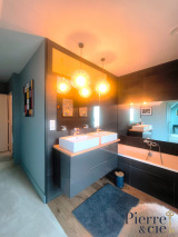 La maison principale, entièrement refaite à neuf et dans un état impeccable, propose une très grande pièce de vie lumineuse avec insert, bénéficiant d’un chauffage performant par climatisation air/air. Toutes les fenêtres sont en triple vitrage, garantissant un confort thermique et phonique optimal. La cuisine, entièrement équipée et aménagée, séduira les amateurs de convivialité et de gastronomie.