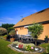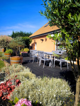 A l'extérieur, les 770m² de terrain sont totalement agrémentés, fleuris, arborés. La terrasse vous permettra de passer les soirées en famille ou entre amis.