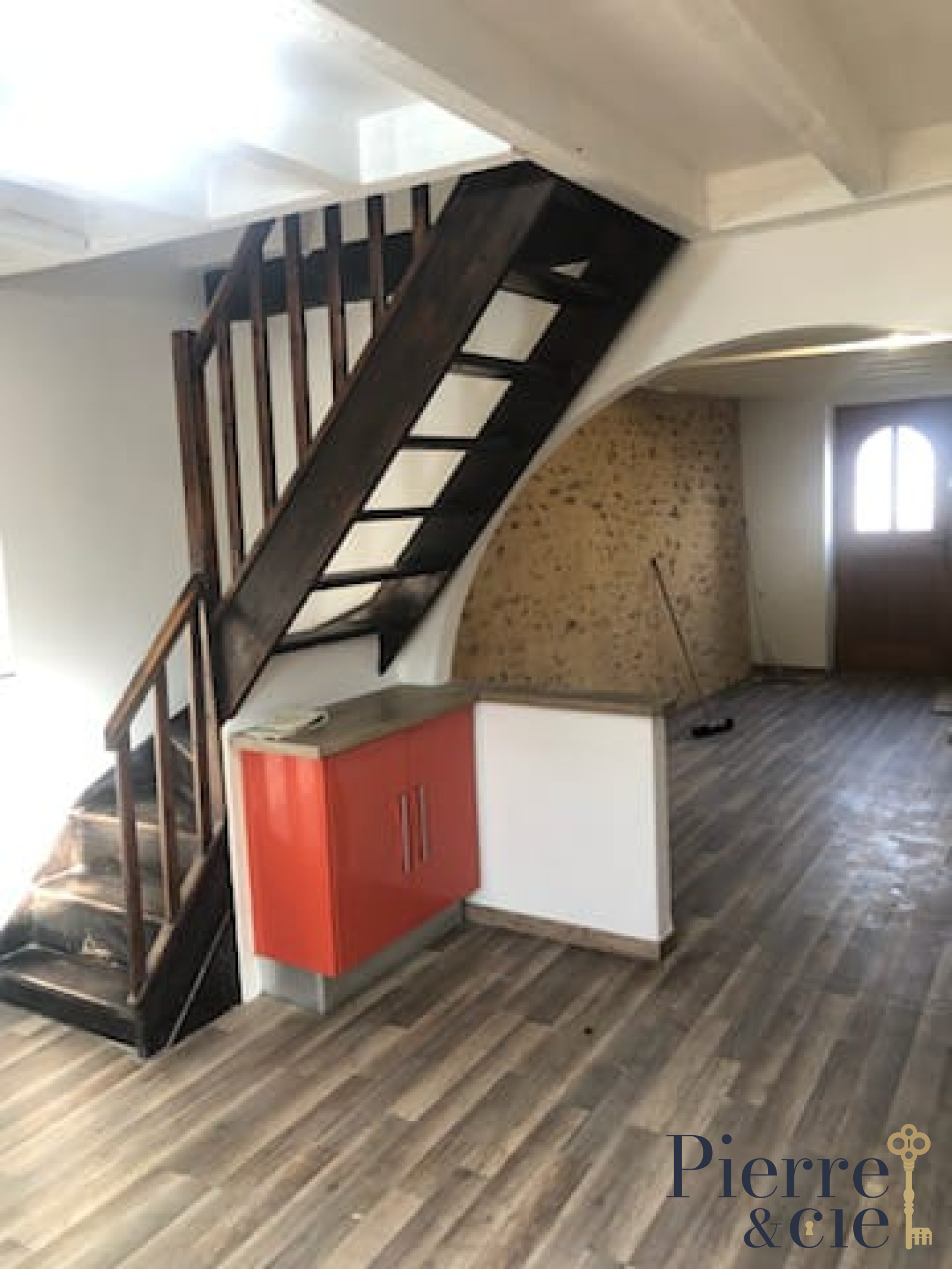 Vous trouverez au rez-de-chaussée une grande pièce de vie ouverte sur la cuisine aménagée.